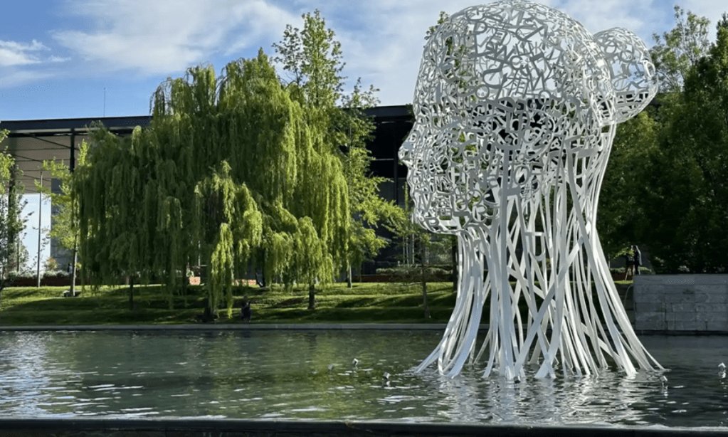 Las instalaciones de Telefónica incorporan la monumental escultura «Iris», del reconocido artista español Jaume Plensa. Esta no es solo una dimensionada pieza decorativa, sino que también simboliza la fusión entre creatividad y tecnología, ambos pilares fundamentales de la cultura organizacional de esta empresa.