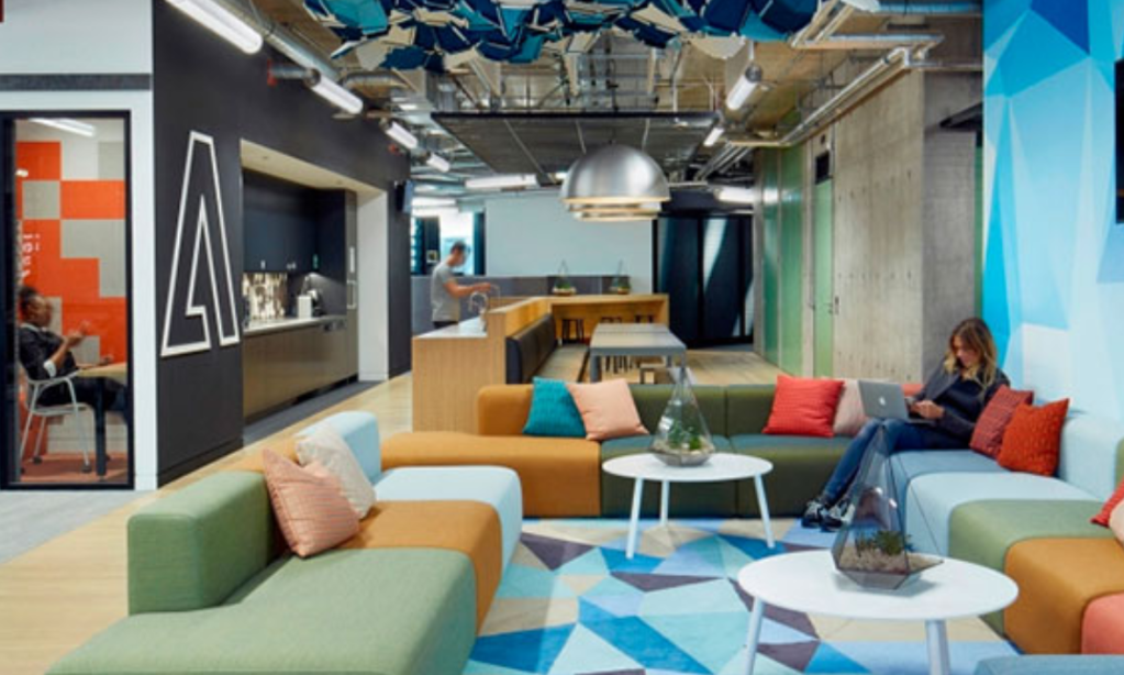 Atrás quedaron aquellas oficinas de grandes salones con cubículos todos iguales y paredes uniformes en un solo tono….En la actualidad, la tendencia es una sala con murales impactantes en las paredes, música suave de fondo y unos metros más allá, otro espacio con obras de arte muy coloridas y ricas en expresividad, acondicionado con acogedores y originales sillones y mesas, clásicos y modernos, de diversos colores, donde los empleados pueden elegir libremente su lugar de trabajo… En conjunto la propuesta se convierte en un entorno por demás estimulante donde los colaboradores disfrutan estar y sin darse cuenta, se vuelven más productivos.