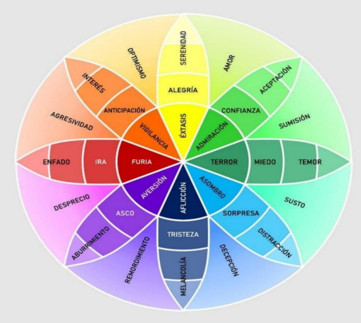 Con la intención de buscar entender mejor a las emociones y con base en la respuesta corporal ante estas, a lo largo del tiempo y con muchos estudios en el medio, se le ha asignado un color a cada emoción. Así surgió la denominada “La rueda de las emociones” de Robert Plutchik, en la cual se muestran las emociones más básicas y las distintas combinaciones de emociones. Los colores, utilizados en esta rueda, son los que se suelen usar para representar las emociones.